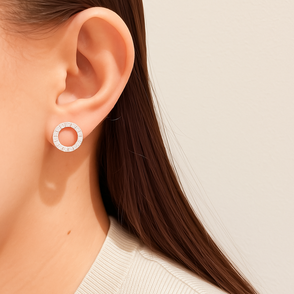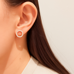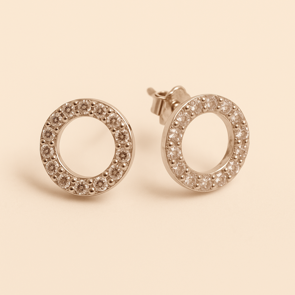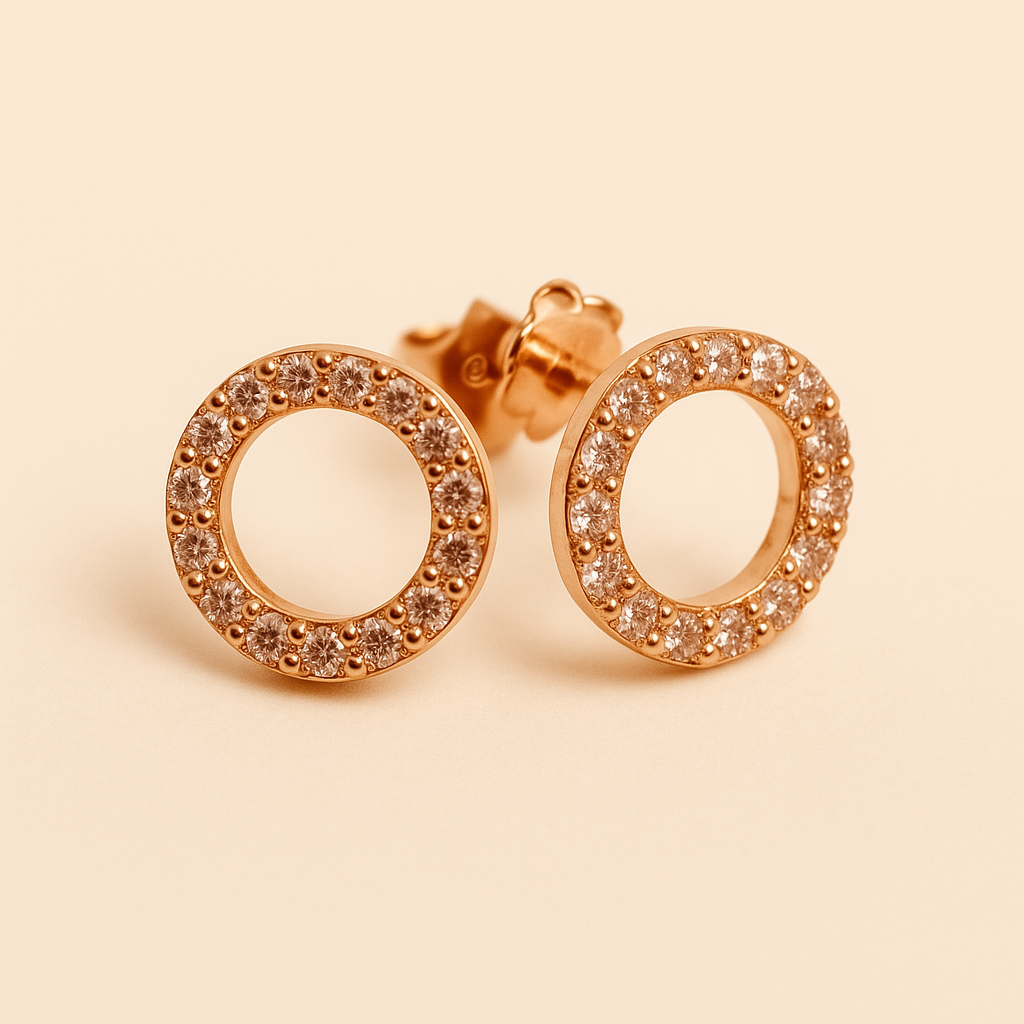 The Camellia Circle Studs speak in soft sparkles and subtle strength. Framed in 18k gold vermeil and encrusted with pavé-set stones, each circular silhouette represents wholeness, love without limits, and the kind of beauty that quietly endures.