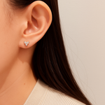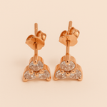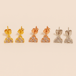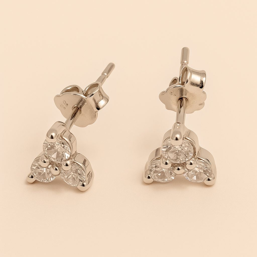 Delicate in form, yet rich in detail, the Hazel Stud Earrings are crafted in 18k gold over a solid 925 sterling silver base, designed to hold their warmth and radiance for years to come. Each stud features a graceful trio of brilliant-cut stones, nestled closely like whispered moments, subtle, elegant, and endlessly wearable.
