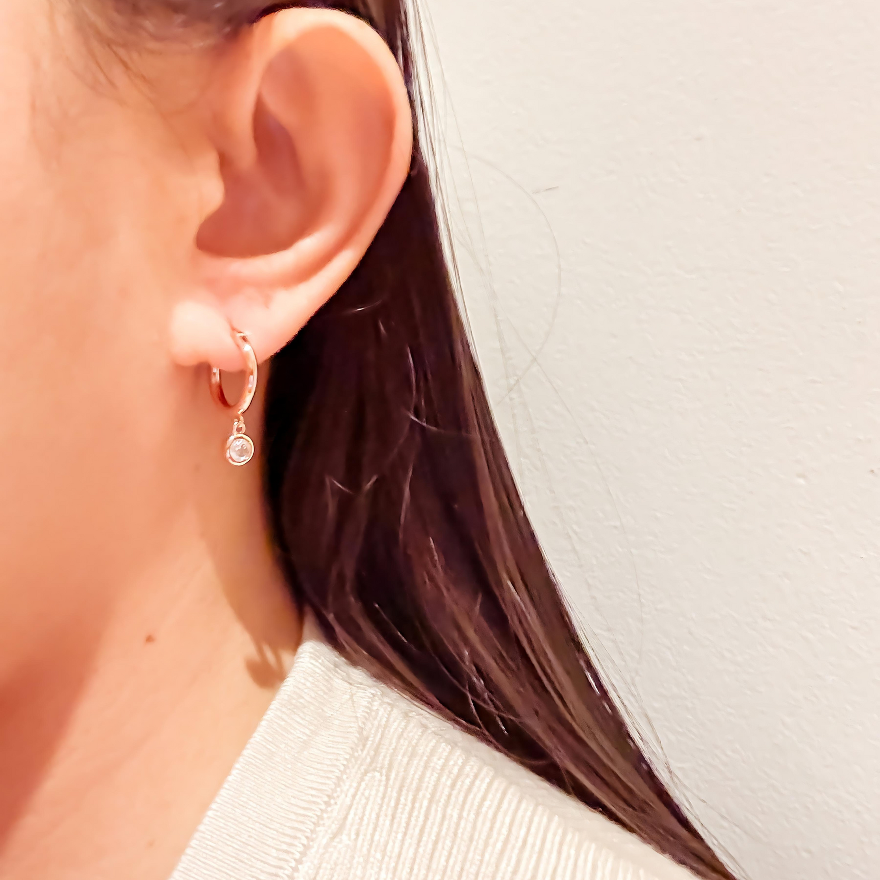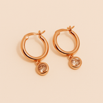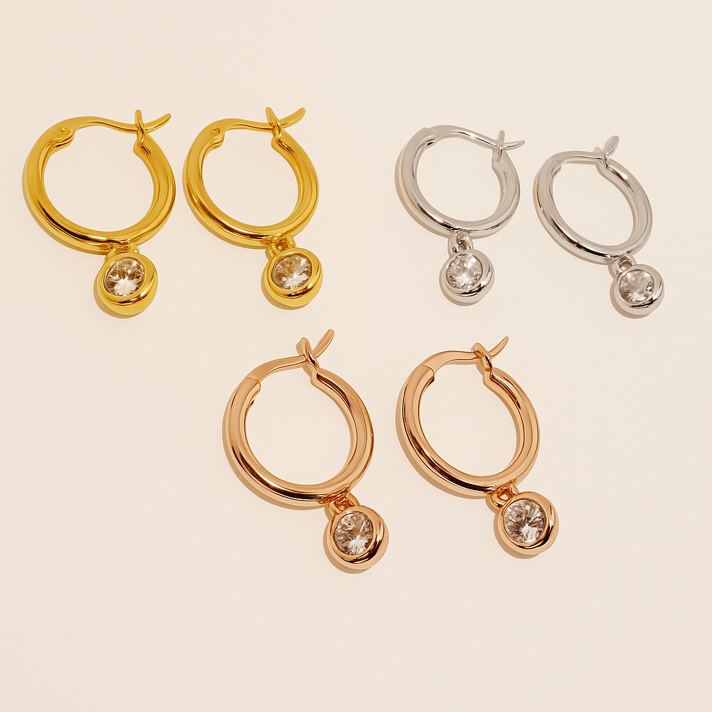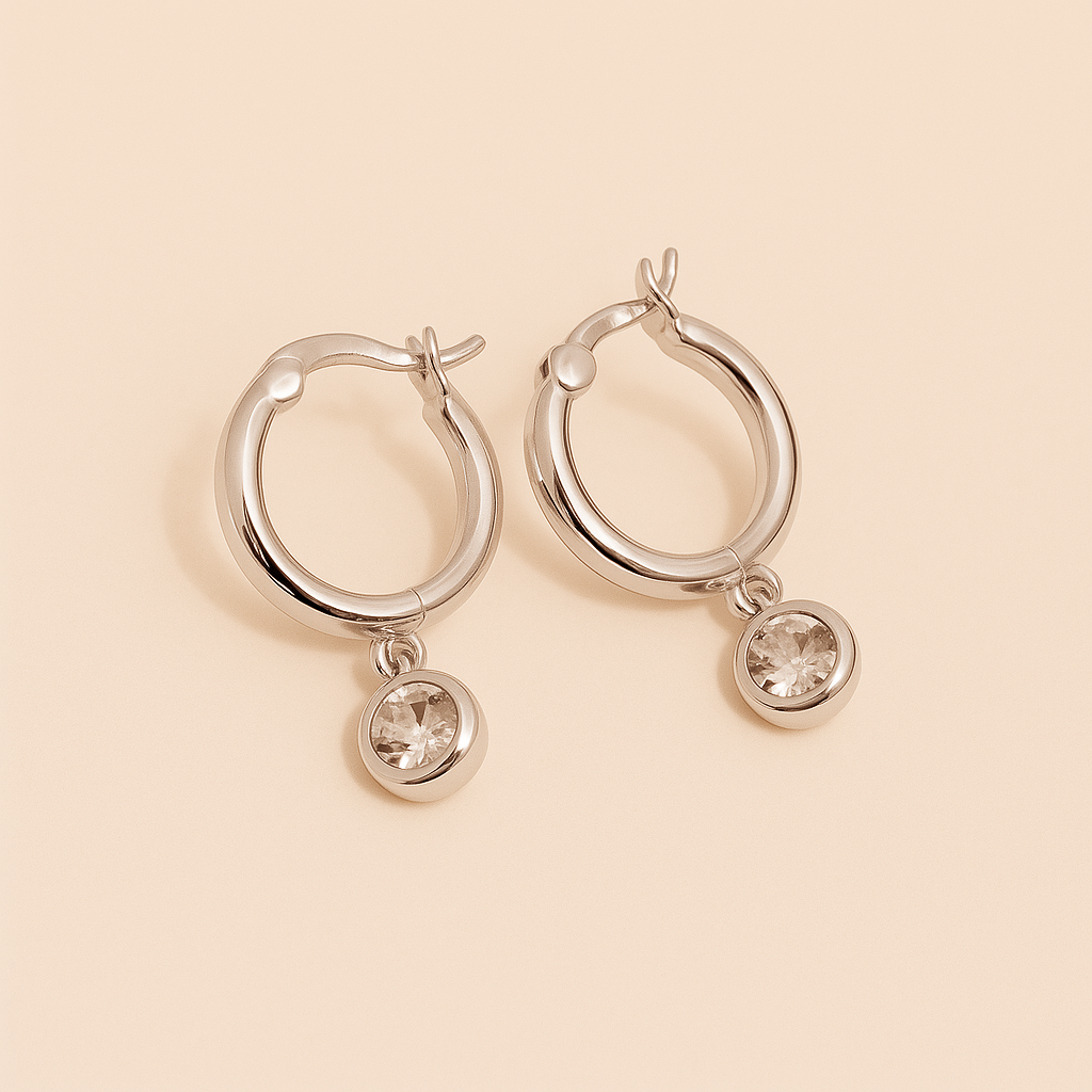 The Poppy Hoops are made to be noticed, not because they’re loud, but because they carry a quiet confidence. A sculpted 18k gold vermeil hoop meets a single round-cut crystal drop, luminous, expressive, and effortlessly refined.