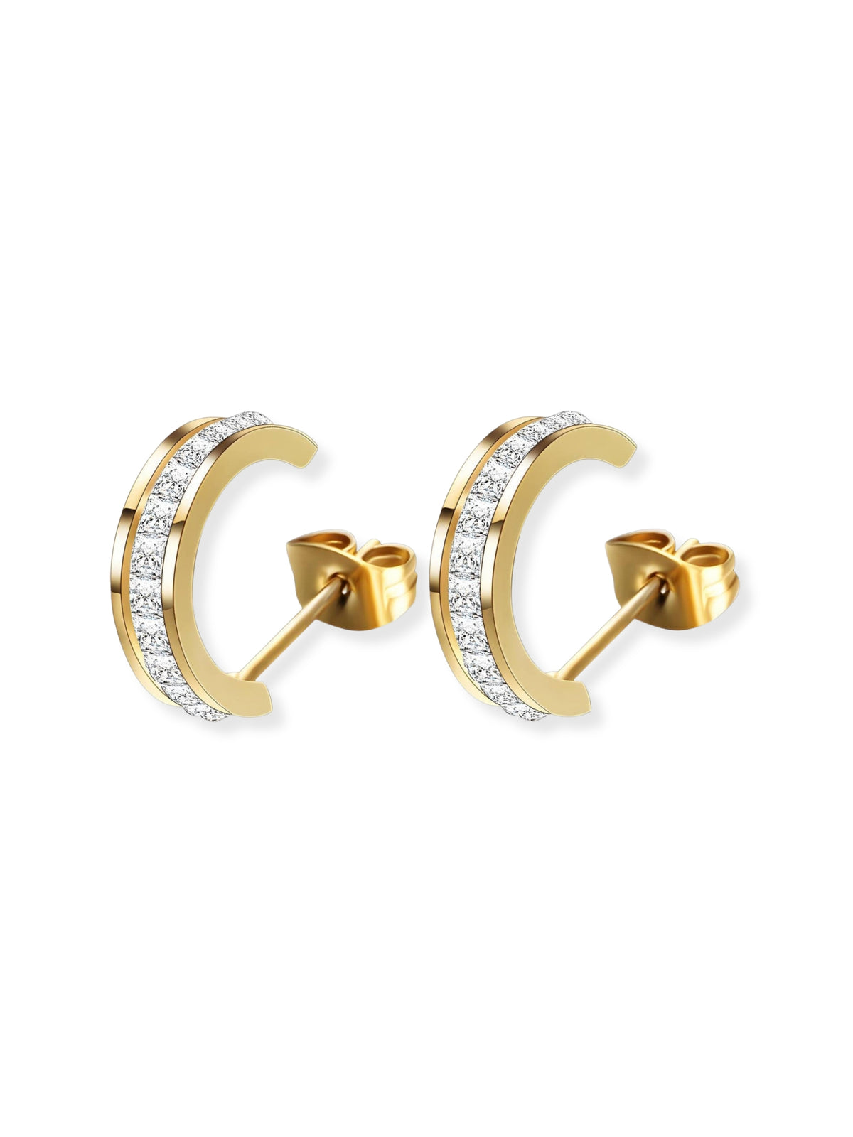 The crescent-inspired silhouette gives these studs a modern, sculptural edge, while the clean gold setting keeps them timeless and easy to wear. Light in weight and perfectly balanced, they sit comfortably against the ear, effortless enough for everyday, yet polished enough to elevate your look without trying.