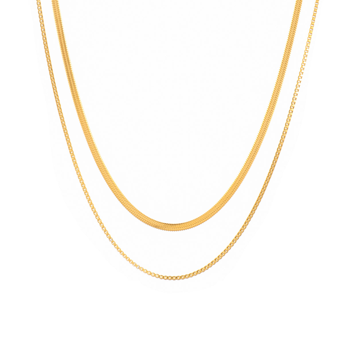 • Set includes: 2-piece necklace set (snake chain + dainty chain)