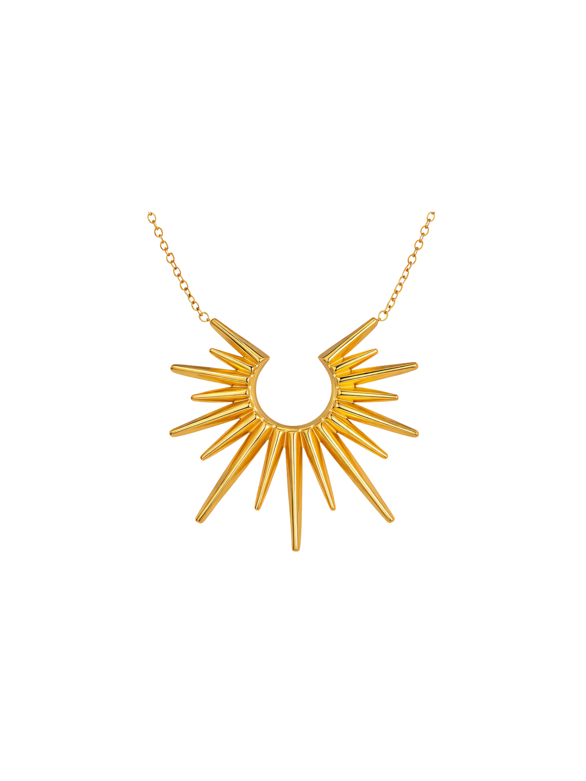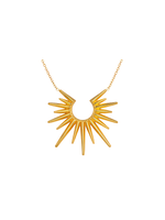 Our Clara Sunburst Pendant Necklace adds a confident glow to everyday gold jewellery. Its sculptural sunburst pendant sits softly against the collarbone, catching the light with every movement and bringing a statement finish that still feels easy to wear. Designed for busy days and polished nights, this gold pendant necklace layers beautifully or stands on its own.
