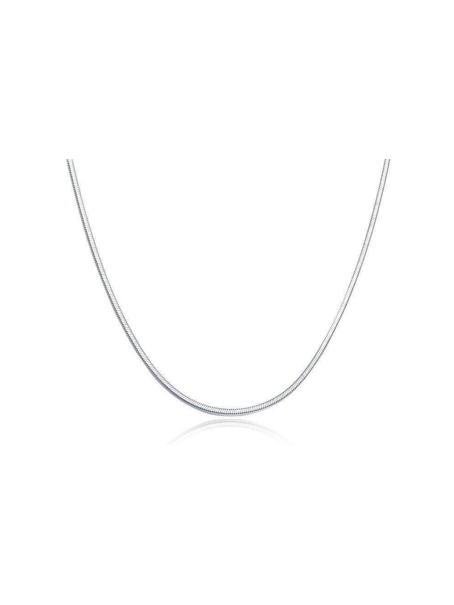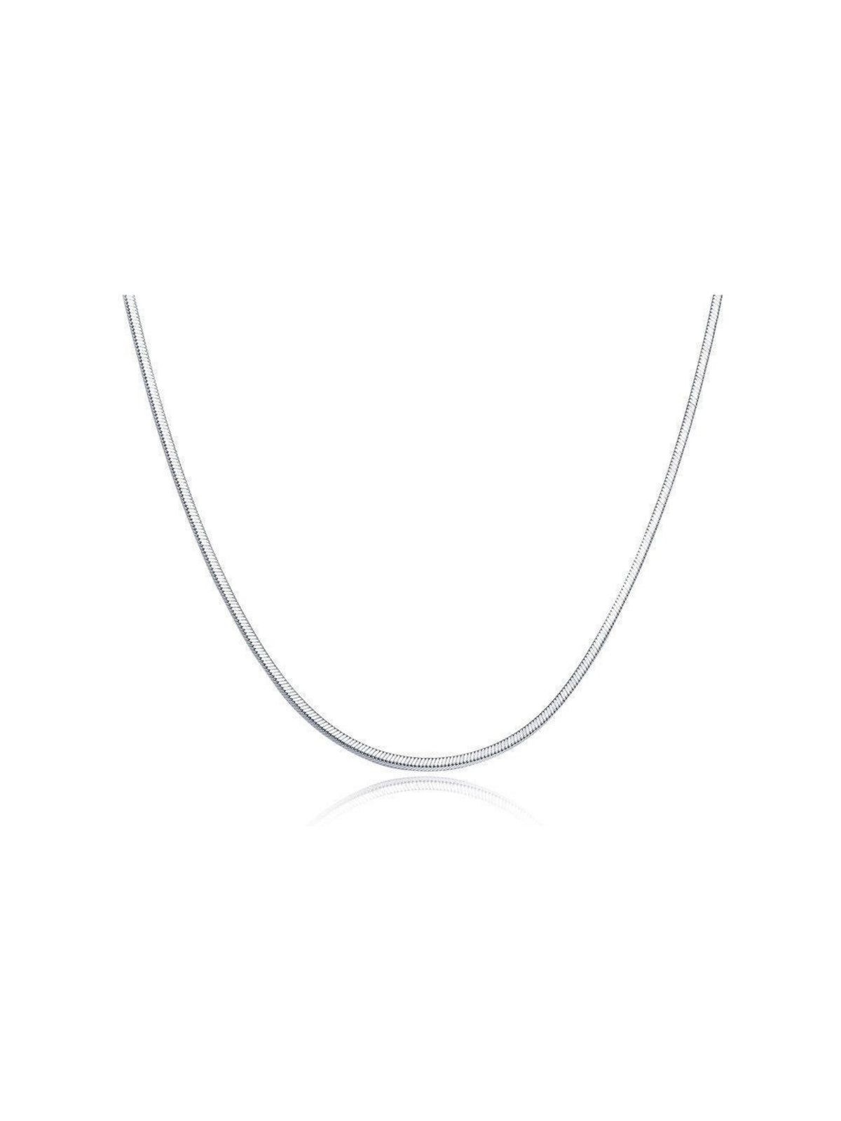 The Momentum Chain Necklace in sterling silver is a study in fluid simplicity. Crafted from high-quality sterling silver, this piece features a smooth snake chain, made from tightly linked segments that create a continuous, liquid-like surface. It drapes effortlessly along the neckline, catching the light softly with every movement and resting against the skin like a second layer.