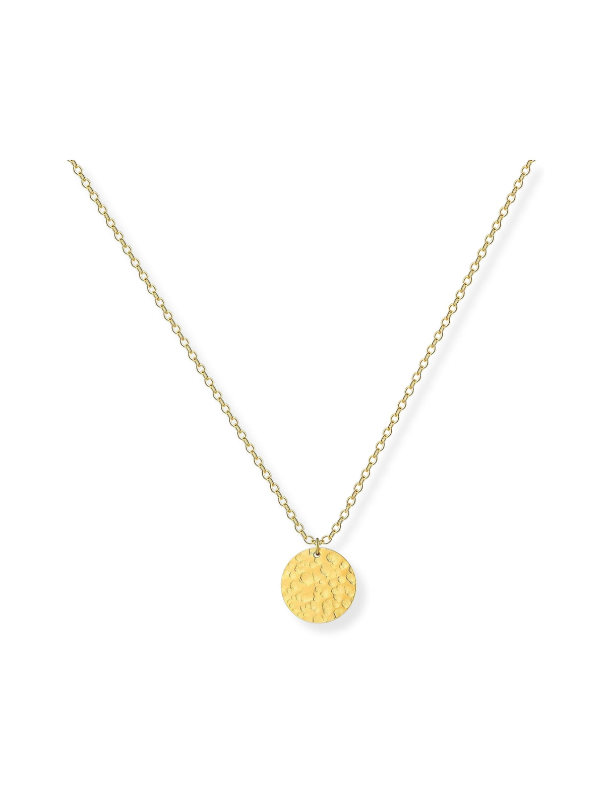 The Forever Textured Round Pendant Necklace features a gently hammered, circular gold pendant that reflects light in warm, shifting patterns. Its organic texture gives the piece a lived-in character, each subtle facet catching the light differently, creating depth without shine that feels too perfect. The round shape symbolises continuity and wholeness, making this necklace feel quietly meaningful and timeless.