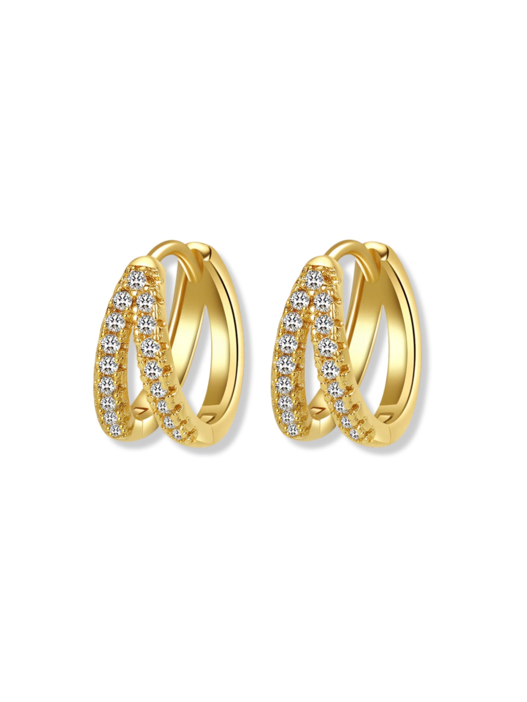 The double-hoop silhouette gives the illusion of layered earrings in a single, comfortable piece, effortless, modern, and quietly bold. The gemstones are individually set to create a continuous line of sparkle, adding radiance without feeling overdone. Thoughtfully balanced, the earrings hug the ear securely and move naturally with you.