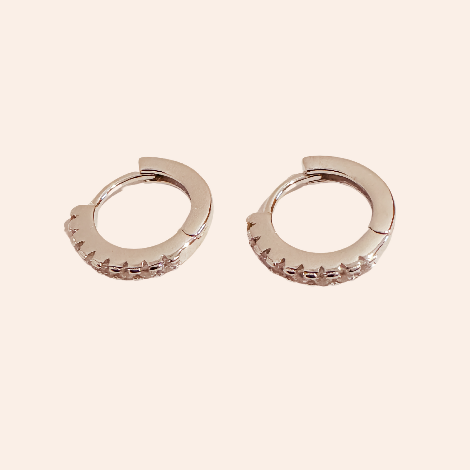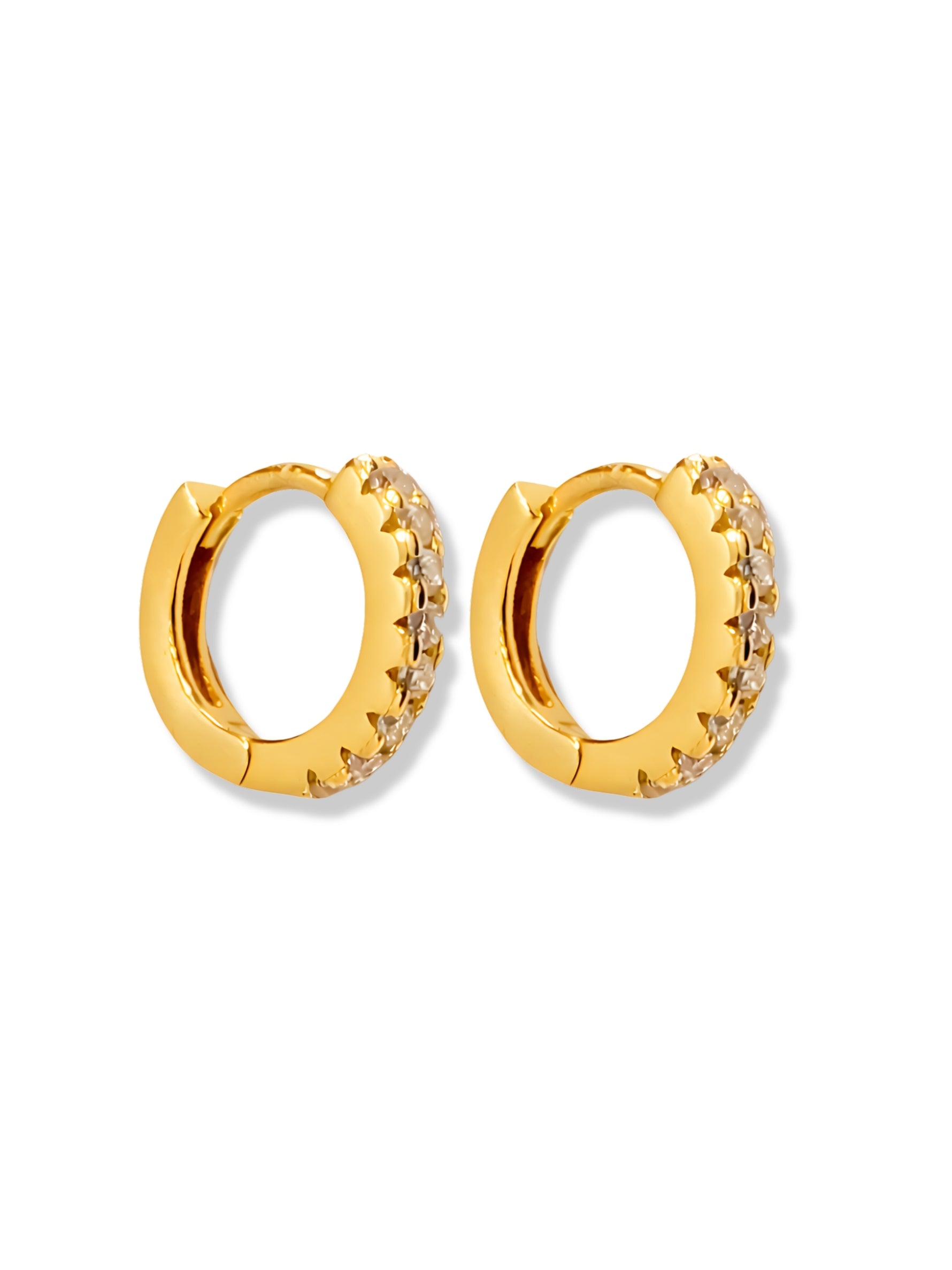 Expertly crafted with sparkling zirconia, these huggie hoop earrings add a touch of elegance to any outfit. The perfect balance of simplicity and sophistication, they are a versatile addition to any jewelry collection. Elevate your look with these stunning earrings, sure to catch the eye of anyone in the room.